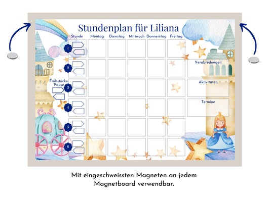 Stundenplan "Prinzessin" 70 Schulfach Kärtchen, personalisiert für die Grundschule, laminiert optional magnetisch, Geschenkidee Einschulung