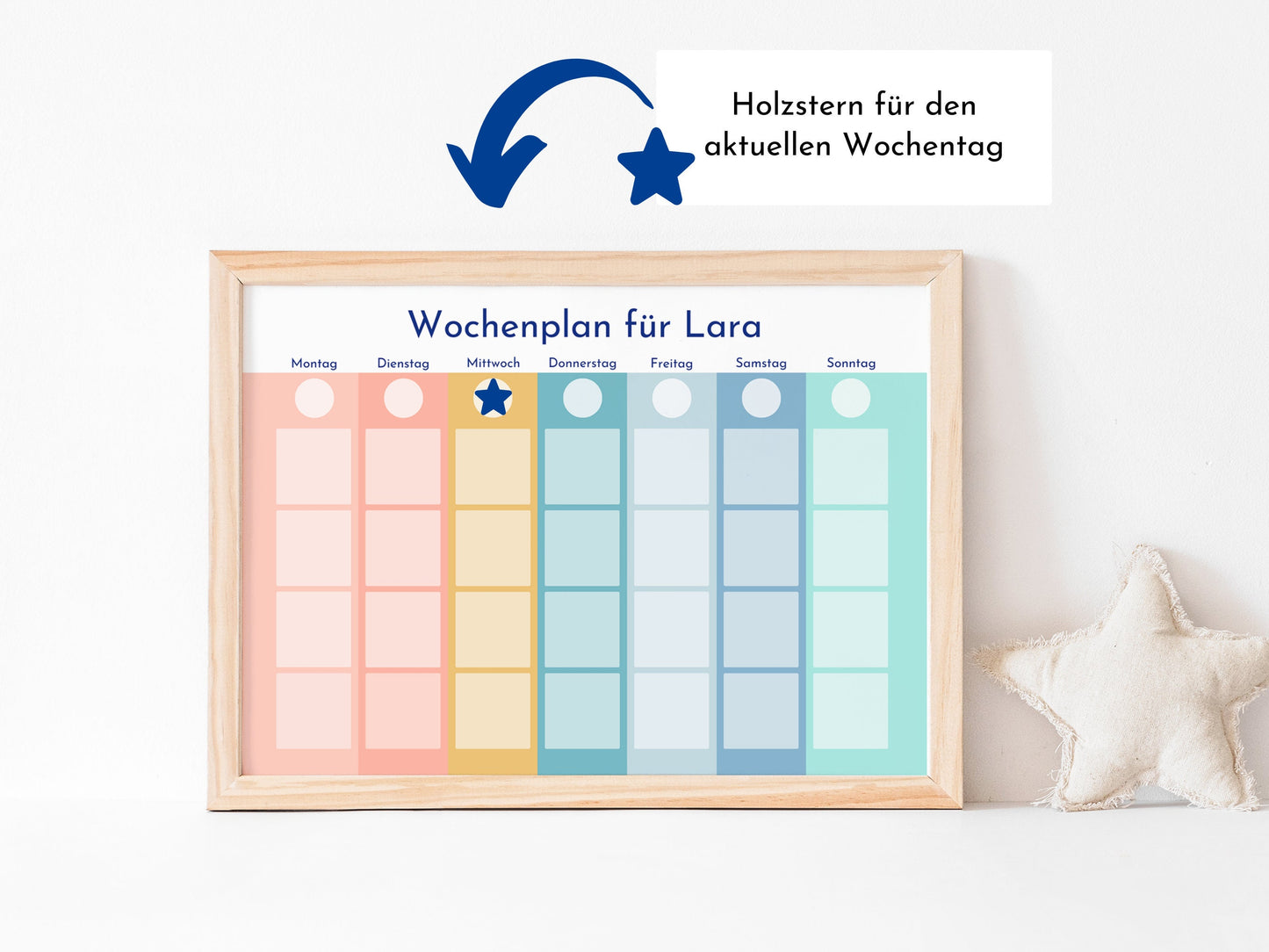 Hier kann dein Kind schon früh seine Woche mit dir zusammen planen und Spielbesuche, Unternehmungen und Hobbys sind immer im Blick.
